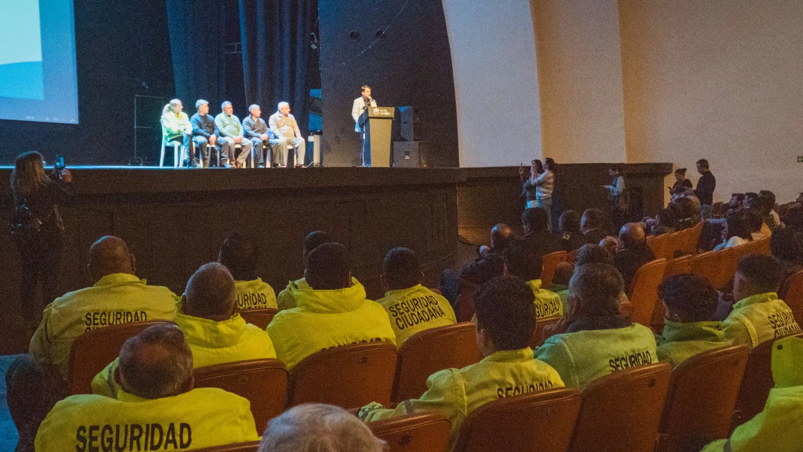 La presentación fue encabezada por el Intendente Marcos Torres, quien estuvo acompañado por el Viceintendente Municipal, Jorge de Napoli; la Secretaria de Gobierno, Cristina Roca; el Director de Relaciones Institucionales y Políticas de Seguridad, Agustín Saieg; el Secretario de Desarrollo Productivo y Deportes, Mauro Proto; el Director de Innovación Tecnológica, Alejandro Cólica y también comisarios retirados que se suman a los equipos de seguridad municipal para aportar su experiencia; en un evento que contó con la presencia de integrantes del Poder Judicial, autoridades policiales, miembros de los Bomberos Voluntarios de la Ciudad, del Honorable Concejo Deliberante y del Tribunal de Cuentas de la Municipalidad de Alta Gracia, comerciantes y vecinos de la ciudad.