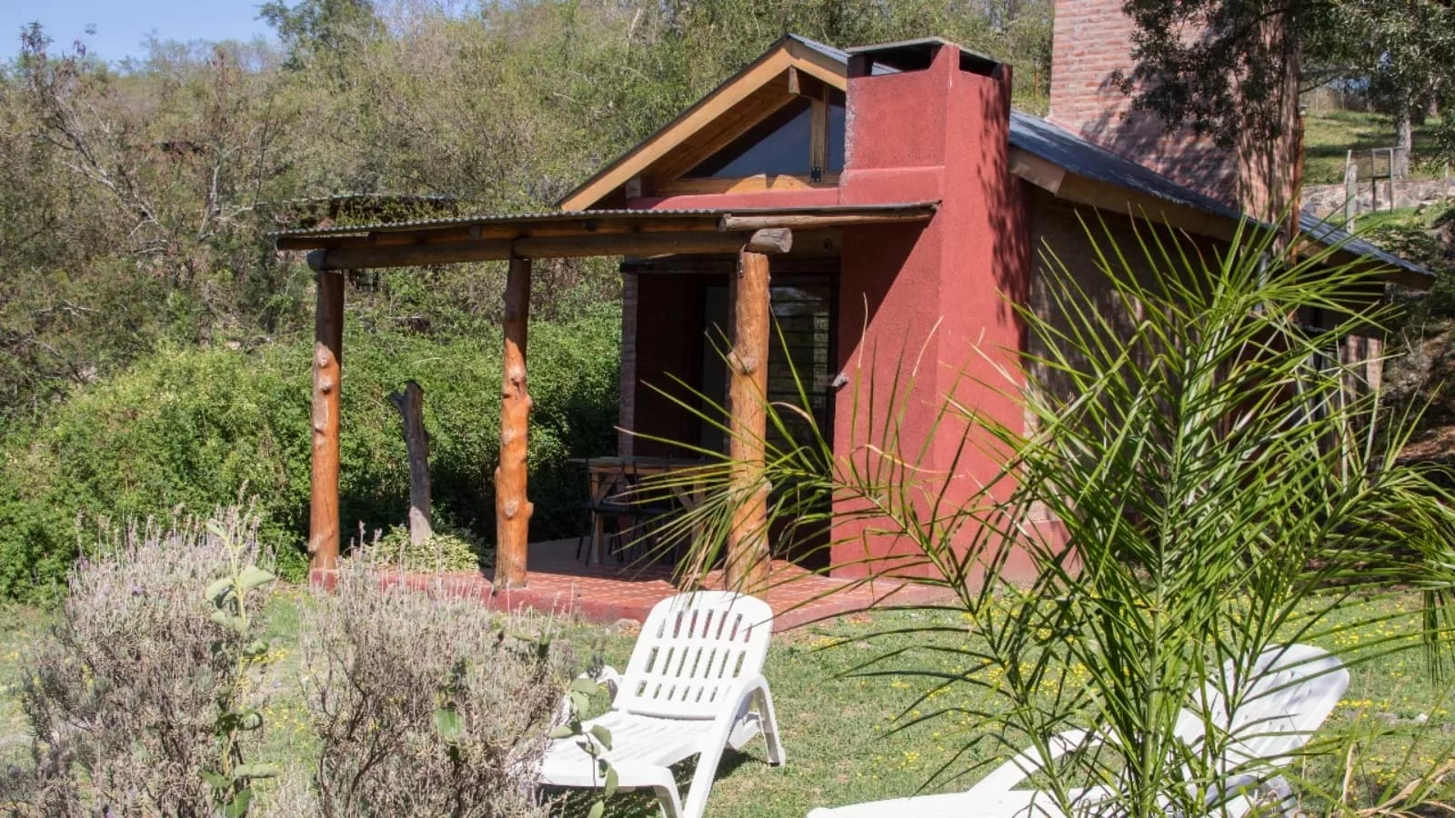 El lugar está compuesto por 3 cabañas, separadas entre sí, enclavadas en medio de las sierras cordobesas, que brindan privacidad e independencia. Cada una tiene su propia galería con asador. En los espacios compartidos se encuentra la pileta ubicada en el parque con excelente vista a las sierras.