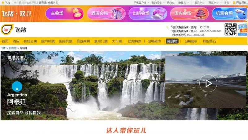 Pabellón Argentino: los usuarios de Fliggy podrán tener acceso a todo el material digital en la campaña que se extiende hasta el 31 de diciembre de 2019. Esta consta de tres bases fundamentales: posicionar Argentina como destino turístico entre los viajeros chinos, promocionar destinos y productos turísticos del país con una importante segmentación de acuerdo a la demanda y venta de productos turísticos argentinos desde dicha plataforma.