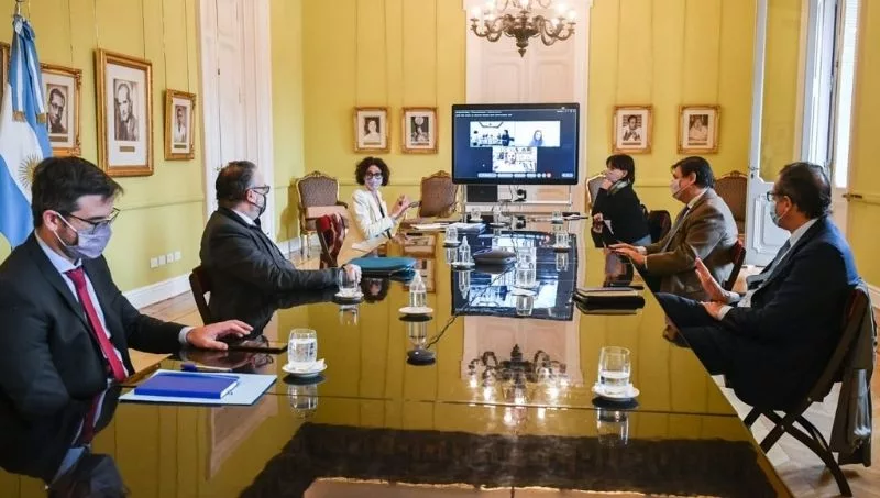 Una nueva reunión del gabinete económico que encabeza el jefe de Gabinete de Ministros de la Nación, Santiago Cafiero, se llevó a cabo esta mañana en el Salón de los Científicos de la Casa Rosada. De la misma formaron parte los ministros de Trabajo, Claudio Moroni; y de Desarrollo Productivo, Matías Kulfas; el presidente del Banco Central, Miguel Pesce; la titular de la Administración Federal de Ingresos Públicos (AFIP), Mercedes Marcó del Pont; la vicejefa de Gabinete, Cecilia Todesca Bocco; y el secretario de Política Económica, Fernando Morra. Asimismo, por videoconferencia estuvieron presentes el ministro de Economía, Martín Guzmán y la jefa de asesoras de esa cartera, Melina Mallamace.