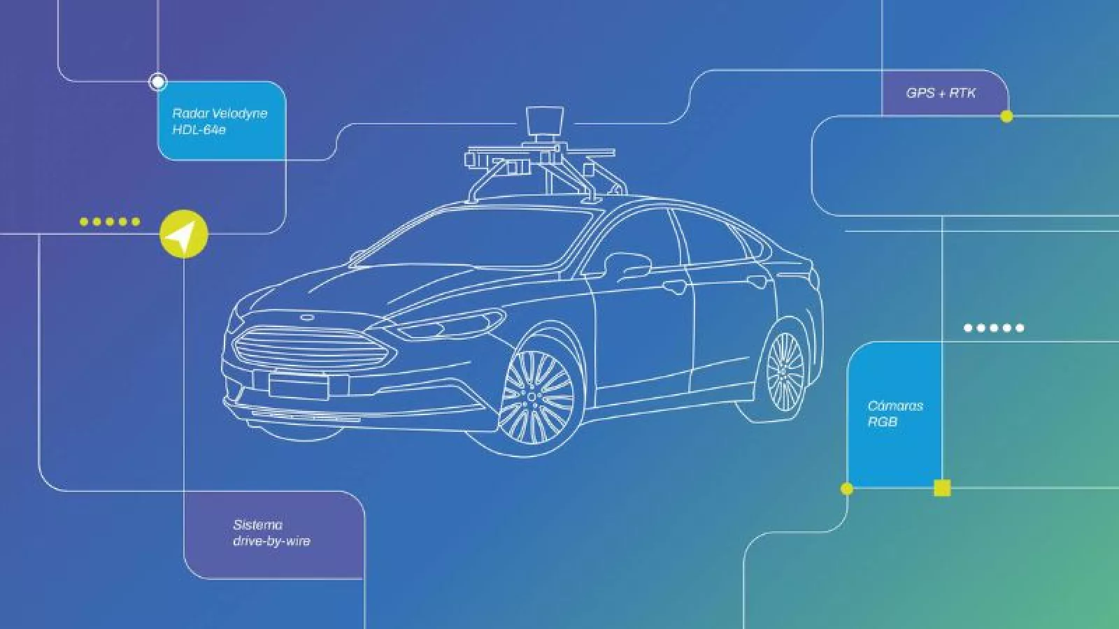El auto cuenta con un sistema informático drive-by-wire que permite controlarlo de manera electrónica. Además posee un radar de 64 haces, que posibilita medir distancias y genera un mapa en 3 dimensiones de su entorno y 7 cámaras RGB que detectan los objetos circundantes a través de las imágenes. Para trasladarse, el auto utiliza una combinación de GPS y RTK, el sistema de navegación cinética satelital en tiempo real que reduce el margen de error de cálculo respecto a la posición del vehículo.