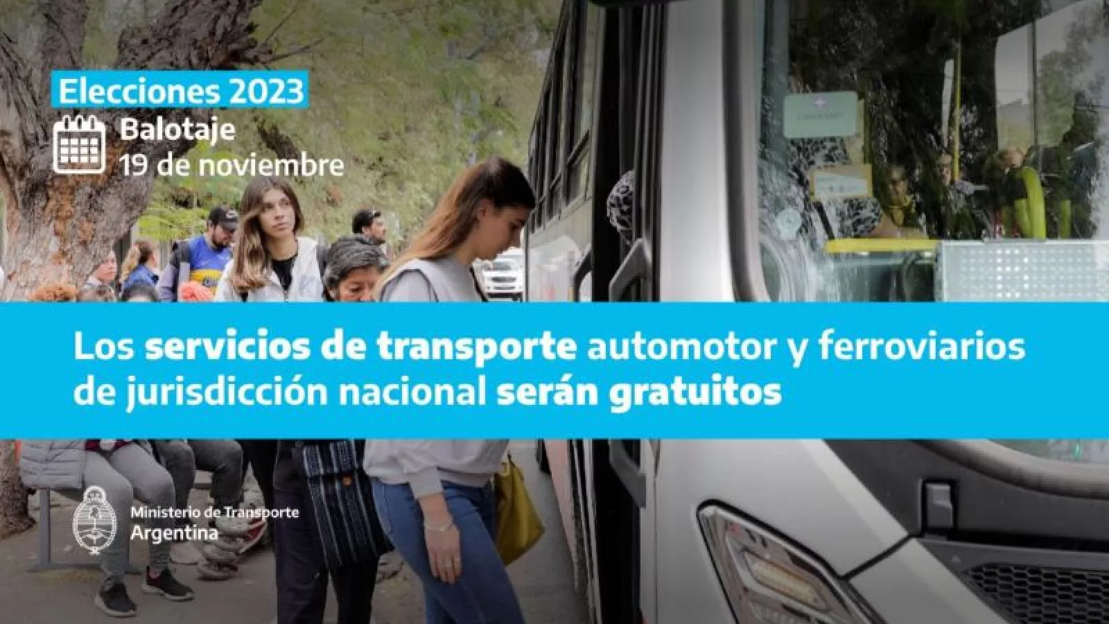 A través de la resolución 610/2023, el Ministerio de Transporte de la Nación, a cargo de Diego Giuliano, estableció la gratuidad para todo el transporte urbano ferroviario y automotor de jurisdicción nacional durante el domingo 19 de noviembre, cuando se celebrará el balotaje para la elección presidencial.