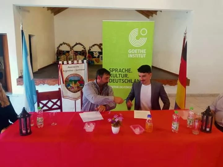 (Por Pablo Miranda) La Asociación de Tradiciones Germanas de Villa General Belgrano, Rosamunde y la Goethe Institut de Córdoba firmaron un convenio para enseñar el idioma en Villa General Belgrano. Kewin Wiedensee, Presidente de la institución de VGB y Gonzalo Oyola, Director del Goethe rubricaron con su firma el acuerdo de entendimiento cultural y educativo.