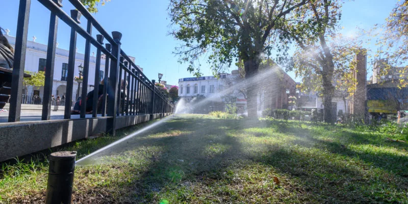 Se trata de la primera acción para llevar riego por aspersión automática a los espacios públicos de la ciudad.