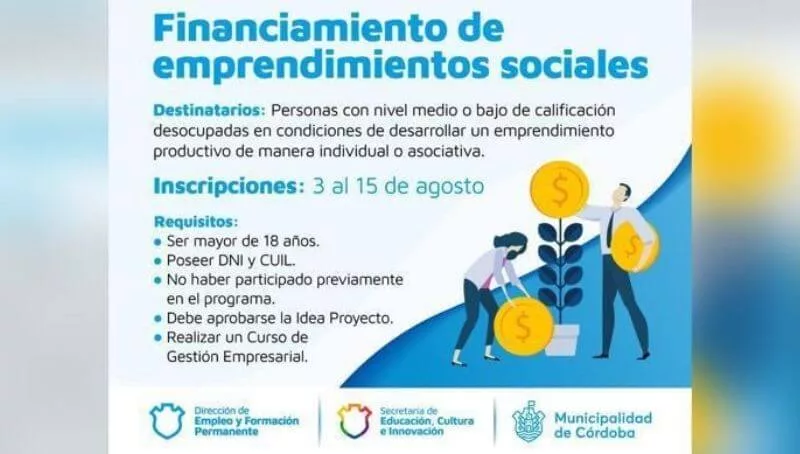El subsidio otorgado a los proyectos seleccionados será de $ 63.900, más 12 meses de ayuda económica por $ 3.600 y la convocatoria está destinada a personas con nivel medio o bajo de calificación desocupadas en condiciones de desarrollar un emprendimiento productivo de manera individual o asociativa.