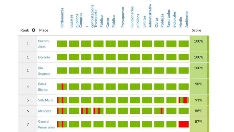 En tanto, la ciudad de Córdoba, por las políticas impulsadas por el intendente Ramón Javier Mestre, mantuvo el mismo puesto IDAC 2016 y 2017, pero mejoró del 95% al 100% su apertura de datos. La Ciudad Autónoma de Buenos Aires (Horacio Larreta) y la localidad cordobesa de Río Segundo (intendente Javier Monte), también alcanzaron el primer lugar.