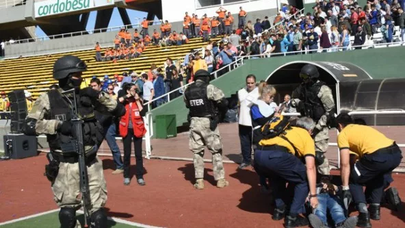 En el estadio “Mario Alberto Kempes” se concretó un simulacro basado en una hipótesis de atentado terrorista, con la organización del municipio y la participación del Ministerio de Salud de la Provincia, el apoyo de la Agencia Córdoba Deportes y de otras instituciones públicas ligadas a la seguridad y la prevención.