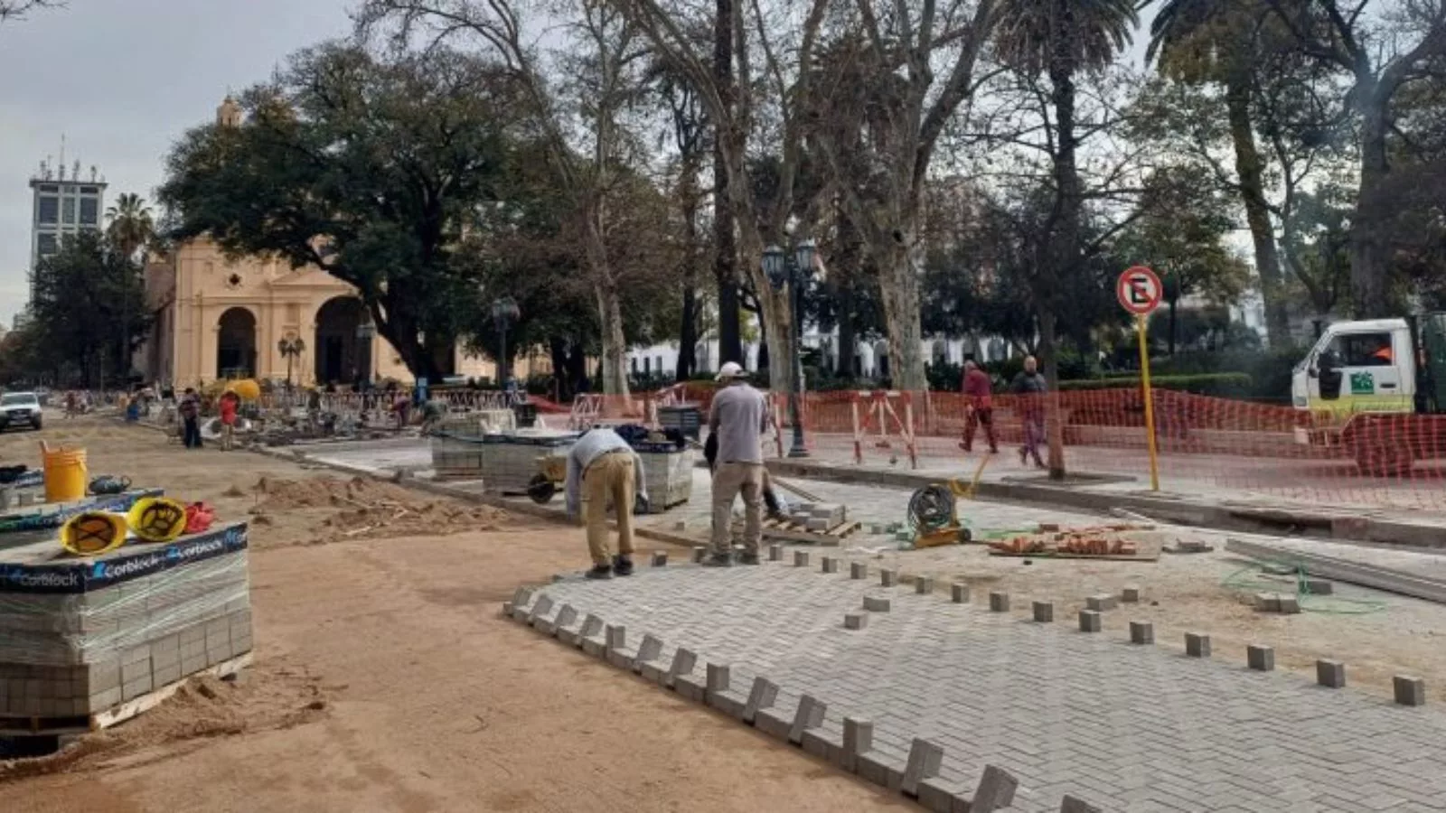 La Supermanzana Histórica nucleada alrededor de la plaza San Martín está terminando otra de sus transformaciones: el ensanchamiento de la vereda de la calle 27 de abril.