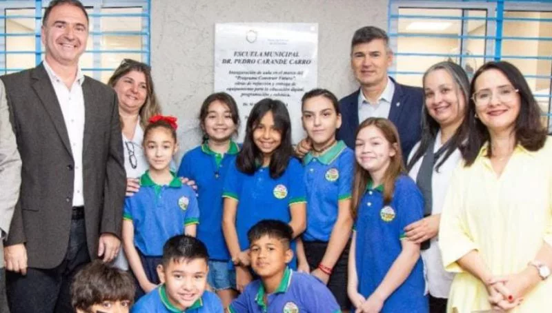El viceintendente Daniel Passerini, junto al secretario de Educación, Horacio Ferreyra y demás funcionarios municipales, inauguró el aula 40 en la Escuela Pedro Carande Carro, de barrio Centro América.