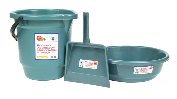 La respuesta la develaron esta semana desde la empresa al relanzar el Ecokit, un combo compuesto por un balde, una palita para la basura y una palangana realizado íntegramente con el plástico del Programa de Reciclado de Tapitas de Plástico de la Fundación Garrahan.