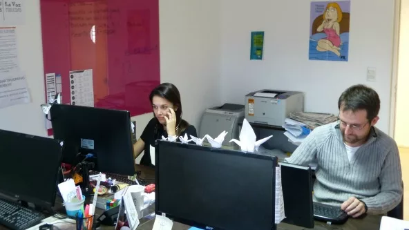 Llegué a Roque Ferreyra al 1900 y me encontré con una enorme recepción muy moderna y silenciosa. Germán Romo (director de medios) llegó para mostrarme la agencia -que en primer piso se convierte en otra cosa (dado las numerosas y espaciosas oficinas) que albergan a alrededor de 35 profesionales de un promedio de entre 25 y 30 años, muy distendidos pero que sólo dejaron sus escritorios para la foto.