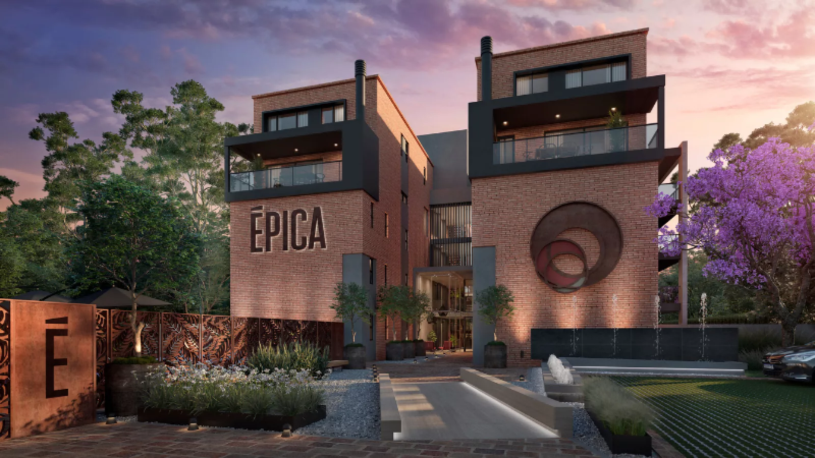 En Épica se podrá respirar diseño y estilo desde el mismo ingreso. Cuenta con un acceso jerarquizado y tanto el ingreso como los palieres se caracterizan por su amplitud y su iluminación natural. También tendrá estacionamiento de cortesía y un entorno verde que se completará con un imponente jardín vertical ubicado en el ingreso central a las torres.