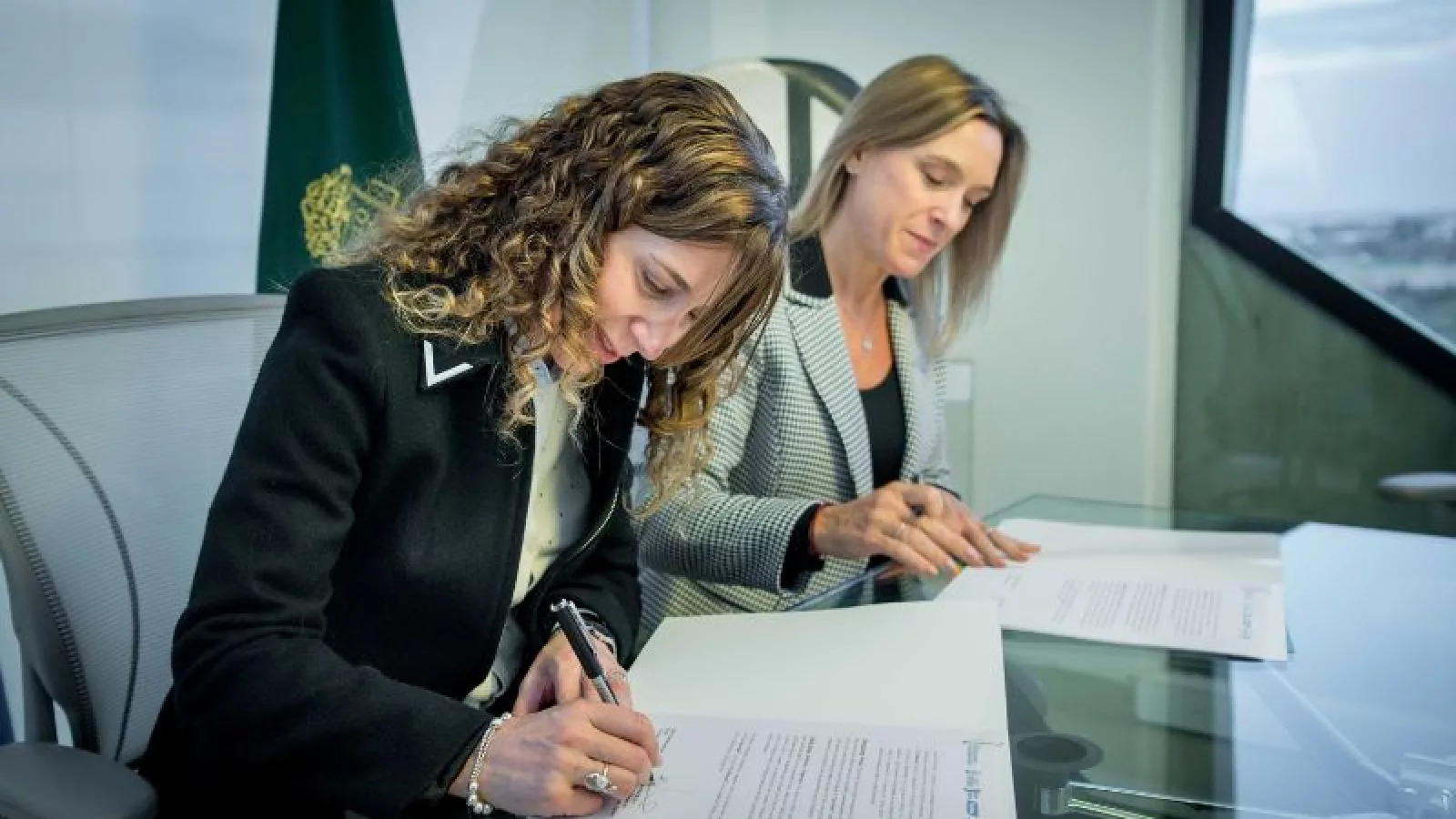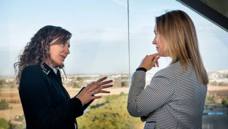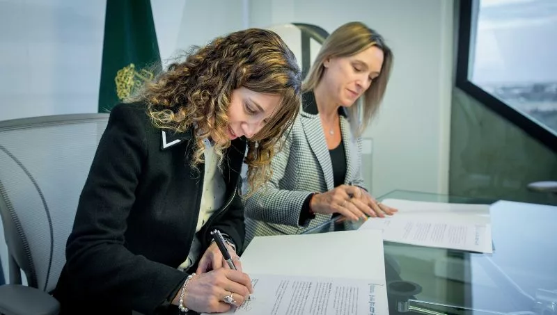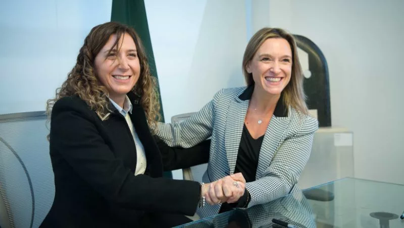 La ministra de Promoción del Empleo y de la Economía Familiar y presidenta de la Fundación Banco de Córdoba, Laura Jure, y la rectora Belén Mendé firmaron un convenio para generar acciones conjuntas y un vínculo a futuro.