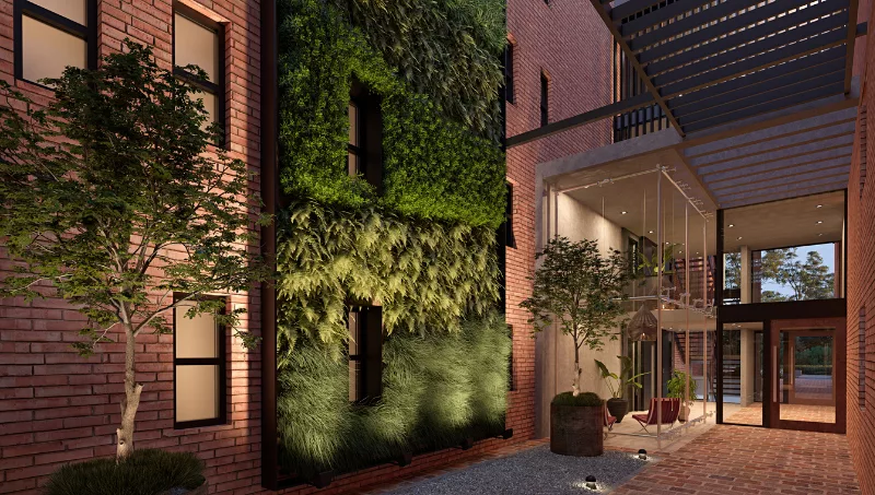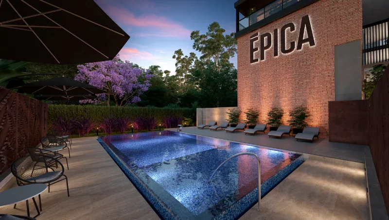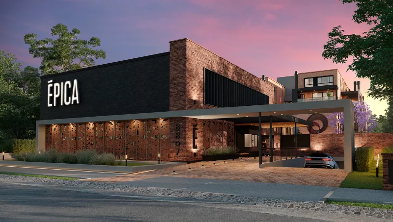 En Épica se podrá respirar diseño y estilo desde el mismo ingreso. Cuenta con un acceso jerarquizado y tanto el ingreso como los palieres se caracterizan por su amplitud y su iluminación natural. También tendrá estacionamiento de cortesía y un entorno verde que se completará con un imponente jardín vertical ubicado en el ingreso central a las torres.