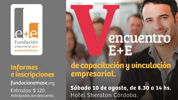 Fundación E + E, sortea 3 entradas para el V Encuentro de Capacitación y Vinculación que se realizará este sábado 10 de agosto a las 8:30 en el Hotel Sheraton. En el encuentro habrá una conferencia principal y talleres de trabajo que tratarán sobre marketing, negociación, flujo de caja y método Canvas. Como novedad, se realizará el primer SpeedNetworking E + E, que permitirá generar vínculos con potenciales clientes, proveedores o socios. Si tenés un emprendimiento y sentís tu “espíritu emprendedor” participá de esta trivia contestando acá cuántos “Me gusta” tiene la fanpage de la Fundación E + E. Pista acá.