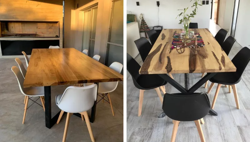La materia prima con la que se fabrican los productos proviene de nobles raíces: cuentan con líneas de percheros y platos, pasando por mesas de comedor (las más requeridas), racks, sillones y hasta revestimientos en madera.