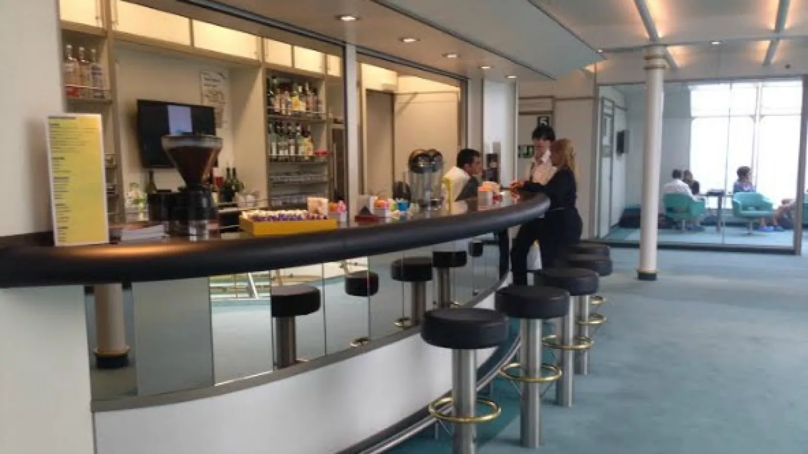 El espacio cuenta con cuatro sectores de acuerdo a la categoría de pasajeros, playroom para niños con asistencia de una niñera, baños de alta gama, barra central,bares, salas de estar, freeshop y servicio de cambio.