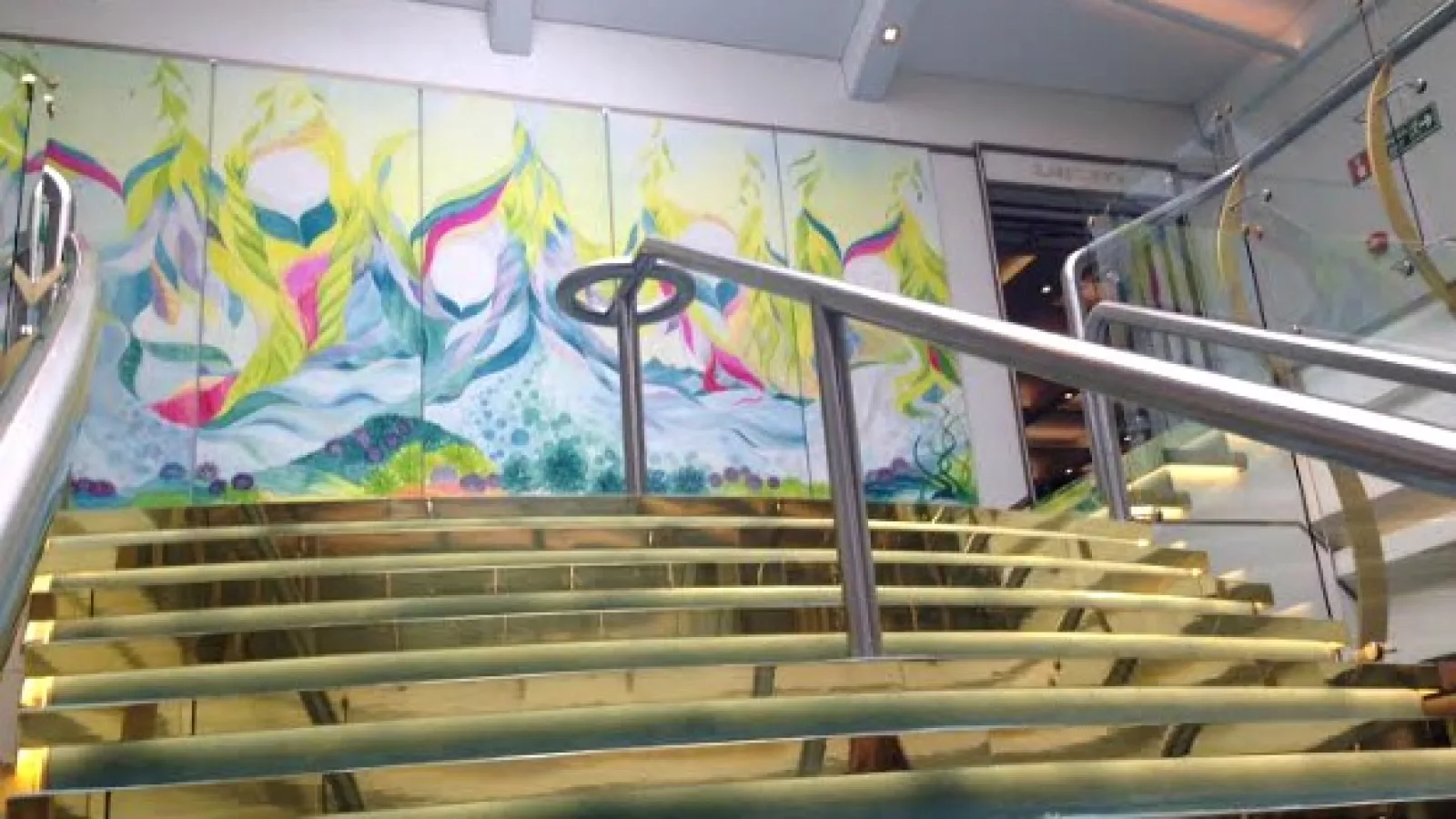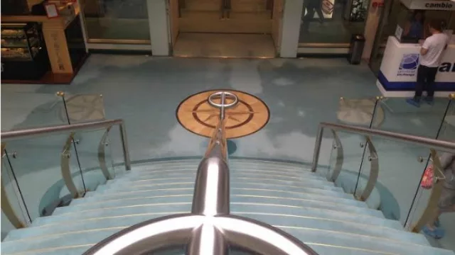 La joyita del lugar es la gran escalera principal con un mural que hace de distribuidor de pasajeros en sus respectivos sectores.