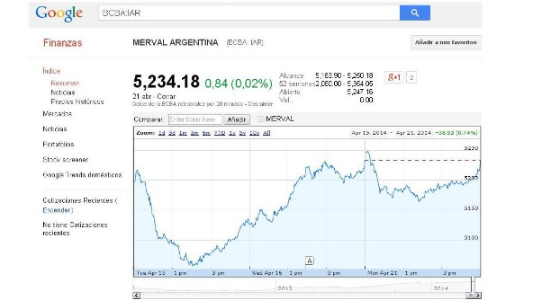 Google Finance, la herramienta del famoso buscador para ver el desempeño de los mercados bursátiles y sus acciones, sumó al Merval. El usuario sólo tendrá que buscar la sigla de la empresa tal como cotiza en el Merval y escribirla en el buscador de Google Finance, para así ver su evolución.