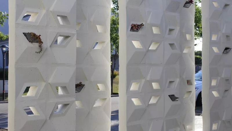 “Aportamos al diseño de planos verticales de una composición distinta a la tradicional, con formas logradas a través del diseño exclusivo de moldería para cada pieza, sin necesidad de terminaciones superficiales”, explica Di Pauli y comenta que se pueden utilizar tanto en interiores como en la intemperie generando planos permeables.