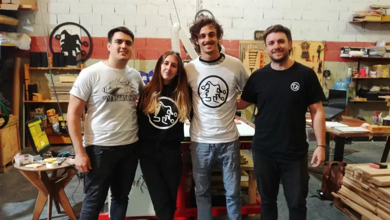 Juan Mogni, Joaquín González, Juliana Imoberdorf y Francisco Torresi son diseñadores de la Facultad de Arquitectura, Urbanismo y Diseño de la UNC y las mentes detrás de esta aventura, que comenzó en plena pandemia, tras la compra de una máquina (un pantógrafo por corte numérico o “router” como también se lo conoce) y que hoy es la encargada de materializar todos sus diseños.