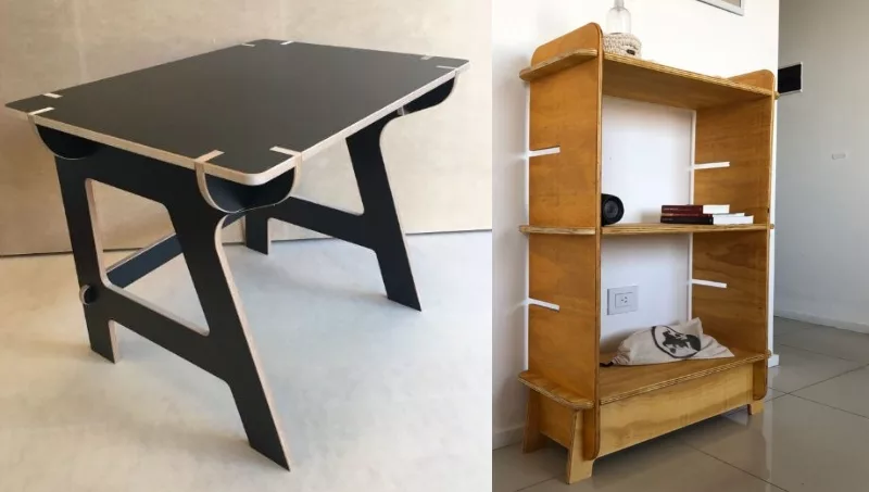 Luego del éxito de sus balance boards, desde Manyin van por más con su línea Flat Pack, una serie de muebles económicos y prácticos. Un concepto a lo Ikea, pero sin herramientas especiales y a bajo costo, pensado para espacios pequeños o el público estudiantil, dada la facilidad de armar y desarmar estos muebles, ya sea una repisa, un banco o hasta un escritorio.