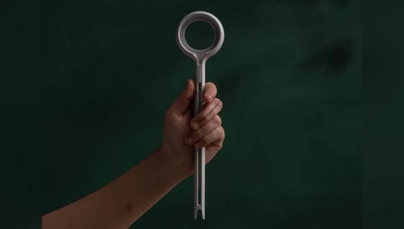 “Sus dimensiones están basadas en los diferentes percentiles femeninos y masculinos definiendo un diámetro externo de 60 mm. Los 200 mm de largo, que van desde el mango hasta la punta inferior están calculados para lograr el mejor grado de compactado de la forma más práctica e intuitiva posible. Compacto es de material recuperado como bidones, paragolpes o productos plásticos de otras industrias”. En su extremo inferior, cuenta con una forma puntiaguda partida en dos cuya función radica en atrapar y manipular con mayor facilidad los plásticos que debemos introducir por el pico de la botella.