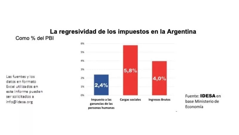 Explica Idesa: “Oficialismo y oposición comparten la aspiración de que menos gente pague el impuesto a las ganancias. ¿Qué fundamento puede tener esta propuesta? A manera de referencia, se puede apelar a la experiencia internacional. Según la OECD, en los países desarrollados el impuesto a las ganancias de las personas recauda aproximadamente 10% del PBI.