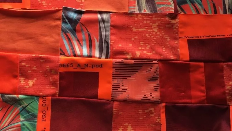 Lo primero que hacen es clasificar las telas por materialidad y color para luego fragmentar las molderías, generando patrones como guías. “Luego se cortan los retazos y se unen mediante costuras generando una tela de mayor tamaño, técnica conocida como patchwork. De esta forma se obtienen piezas únicas y con un mayor valor ecológico”, detalla la emprendedora.