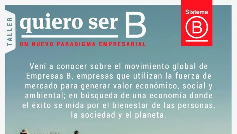 Podrás conocer más sobre este nuevo paradigma empresario que está redefiniendo el sentido del éxito de la economía en el próximo taller Quiero ser B, el cual será dictado el miércoles 17 de abril desde las 18 horas en Espacio Abasto (Pasaje Agustín Pérez 6). La inversión es de $ 300 y constituye un aporte para que la Comunidad B pueda seguir coordinando estos eventos a lo largo del año.