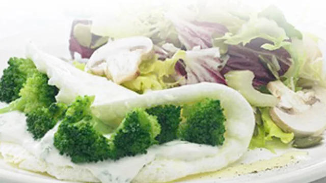 Al momento de servir ubicar los brócoli sobre una mitad del omelette y aderezar con abundante queso crema mezclado con perejil y ciboulette picados, jugo de limón, sal y pimienta; luego doblar el omelette. Quienes lo prefieran, podrán reemplazar el brócoli por espárragos, chauchas, coliflor ó la verdura de preferencia. Por último acompañar con una ensalada fresca de lechuga, champignones y apio a la que también se le podrá agregar tomates secos hidratados.