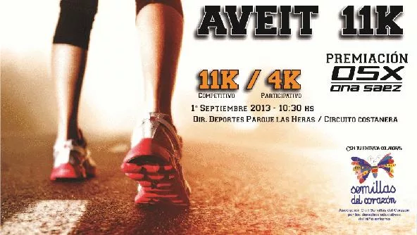 La Asociación Civil Semillas del Corazón los invita a la primer maratón solidaria Aveit. La misma se llevará a cabo el próximo domingo 1º de septiembre a partir de las 10:30 en la costanera ubicada en el Parque las Heras, teniendo como largada y llegada la Dirección de Deportes de la Ciudad de Córdoba. Si querés llevarte un pase sin cargo decinos acá a beneficio de que Asociación es la Maratón. Pista acá.