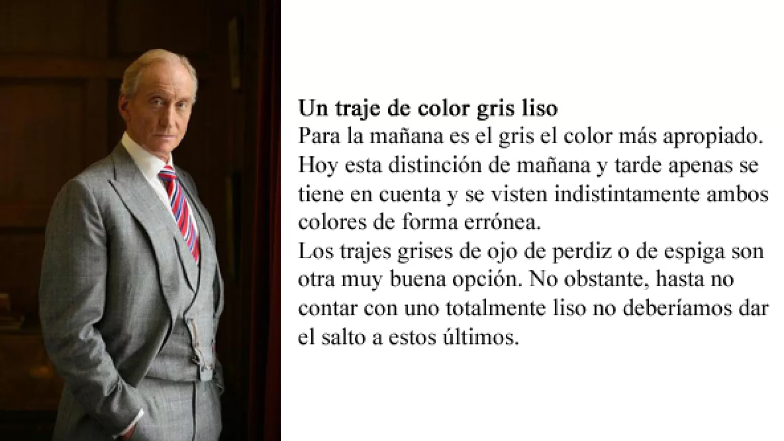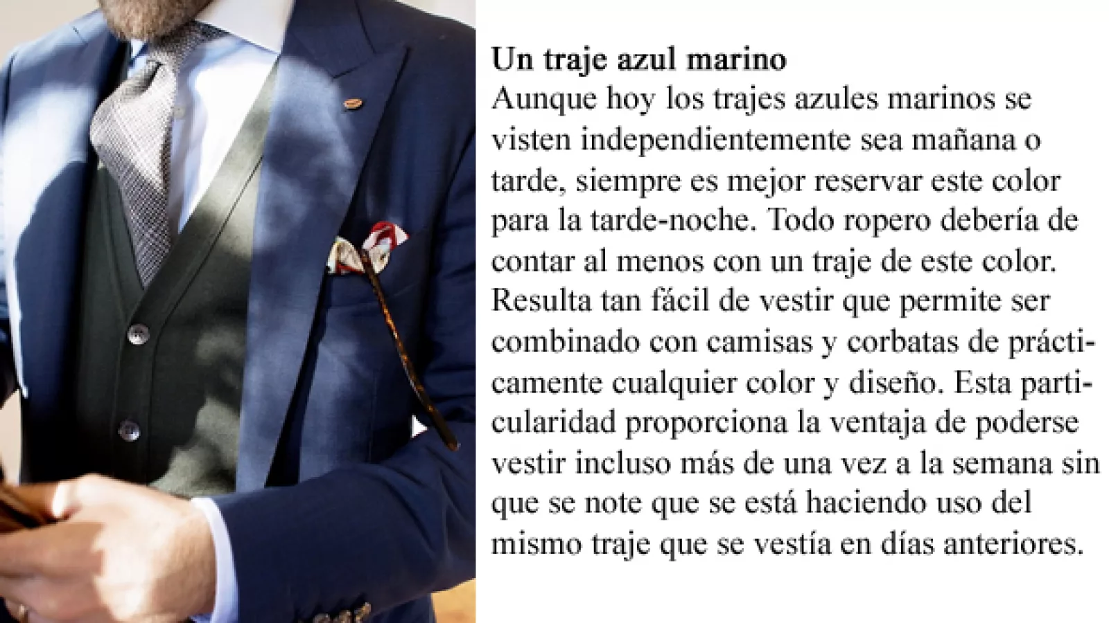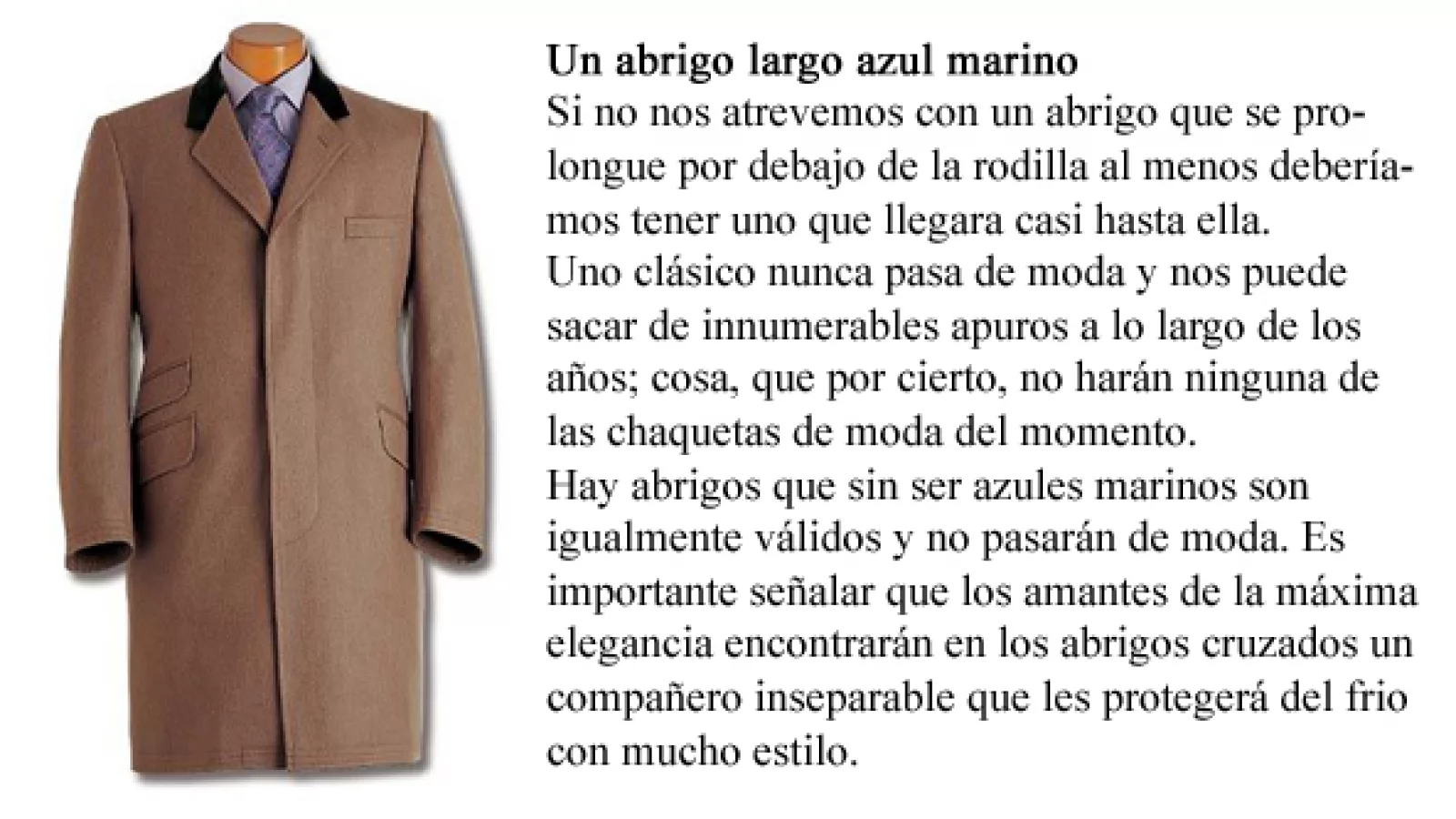 Pero nosotros, elegantes caballeros, le hacemos “pito catalán” a las tentaciones de pasarelas y centramos nuestra atención en los conceptos y reglas que regulan el buen vestir. Pensar que nuevo elemento ingresará al armario hace que nuestras compras sean inteligentes, disminuye el riesgo de adquirir objetos pasajeros y aumenta las posibilidades de alternar conjuntos sin dar la impresión de estar repitiendo prendas.