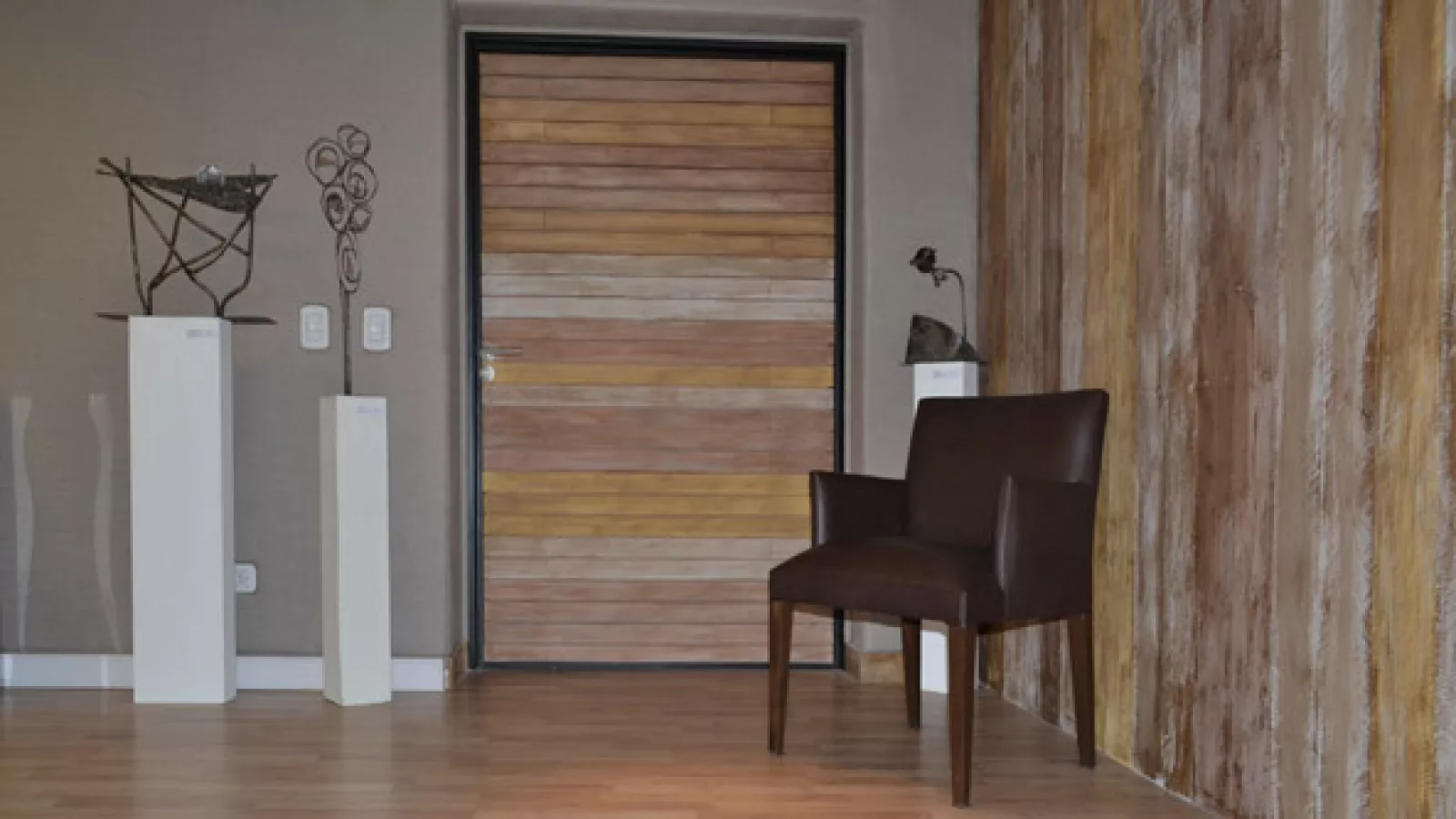El interiorismo de la sala declara poco pero es contundente, rústico y elegante.