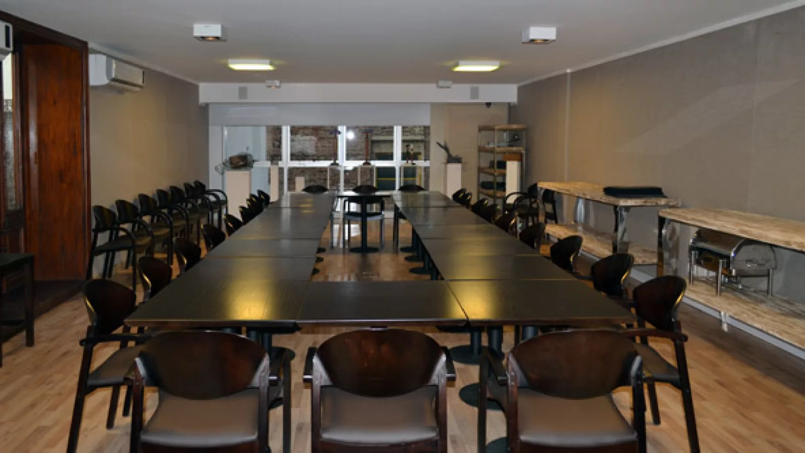 El salón tiene una superficie de 79 m2 con capacidad para 80 personas, en su diseño rige la versatilidad, es posible que se amalgame con el restaurante y la terraza o bien que funcione como una sala para conferencias, eventos institucionales o particulares.
