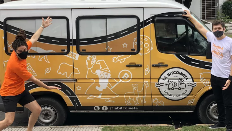 Rodrigo Gallego es uno de los tripulantes de este utilitario Mercedes Benz que recorre Argentina y la región “evangelizando” sobre el blockchain, las criptomonedas y el Bitcoin, como nave insignia. Se define como “nómade digital” y está construyendo su criptorenta, un ingreso que viene de sus inversiones en Bitcoin y que no se limita a esperar que su cotización suba.