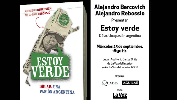 Esta tarde a las 18.30 se presenta en forma libre y gratuita, el libro “Estoy verde, una pasión argentina” en el que Alejandro Rebossio y Alejandro Bercovich se propusieron echar luz sobre el fenómeno del dólar en nuestro país. Si no querés perderte la chance de leer éste libro, decinos acá a qué precio se comercializa. Pista acá.