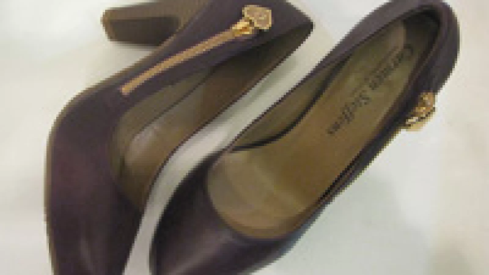 Zapatos de cuero con taco medio, antideslizantes, con detalles en dorado.