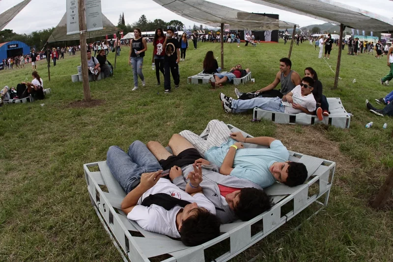 Después de la tormenta, la calma reinará y después de tanto pogo, lo mejor es “tirarse” a descansar. Y eso hicieron decenas de asistentes a la última edición del Cosquín Rock que aprovecharon los camastros armados con material reciclado (estructura de hierro, telas) que la organización había dispuesto en un sector del predio de más de nueve hectáreas en Santa María de Punilla.