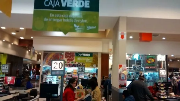 Se trata de la implementación de “cajas verdes” donde se cobran los productos pero no se entregan bolsas plásticas.