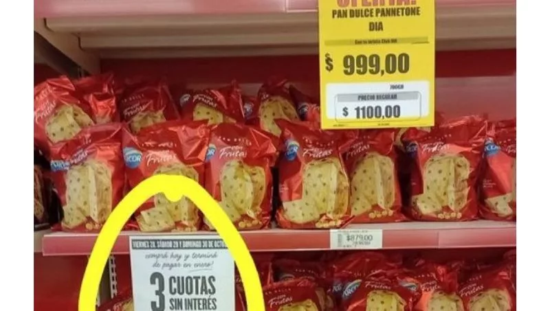 Un reconocido analista y consultor económico, subió una foto a su cuenta de Twitter en la que mostraba un pan dulce a $ 1000 y un cartel que señalaba que el producto podía ser abonado en "hasta 3 cuotas sin interés".