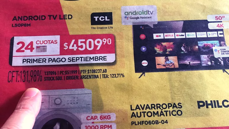 - Valor del mismo TV financiado en 24 cuotas: $ 108.237