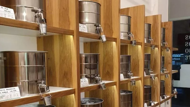 La modalidad de compra es “con lo que tengas en casa”: el público que llegue al local a buscar su mercadería puede hacerlo con bolsas, tuppers, frascos, botellas, etc. Si bien el local vende algunos de estos productos, la idea es que sean propios.