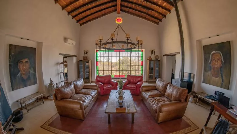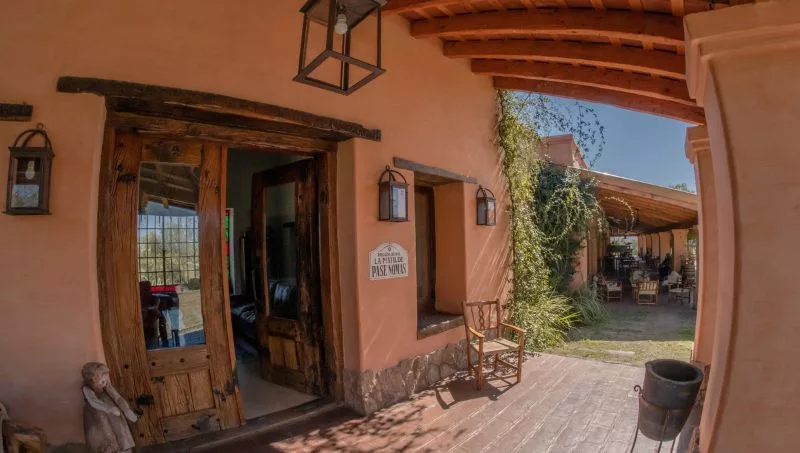 “Decidimos seguir la misma filosofía y así fue que construimos una posada íntegramente en adobe siguiendo un lineamiento de lo que sería la bioarquitectura o arquitectura responsable, pero sobre todo utilizando materiales que no iban a degradar el medio ambiente”, justifica Pablo Asef. En toda la posada no se utilizó madera nueva. Las paredes son de adobe y todas las pinturas son orgánicas: las interiores hechas en base a proteína de leche y las pinturas exteriores hechas en base a baba de cactus.