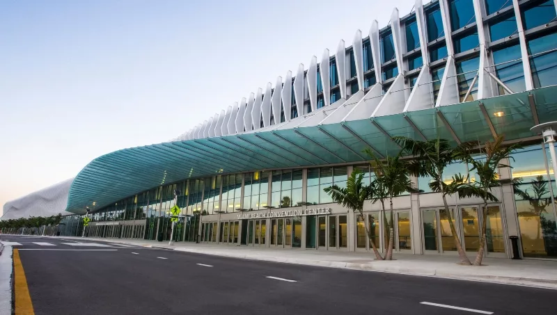 El Miami Beach Convention Center surgió en los años ‘60. A partir de 2015 la ciudad de Miami llevó adelante una renovación y ampliación que duró 3 años (tiempo en el que mantuvo la actividad) y demandó US$ 620 millones.
