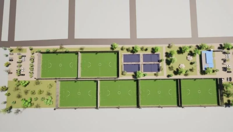 Este proyecto deportivo privado, llevado adelante por el fideicomiso Elenia Sport contará con 2 hectáreas, en la que los usuarios dispondrán de 5 canchas de fútbol 7, una cancha de hockey reducido (primera en Córdoba y única en su tipo para alquilar de manera particular), 4 canchas de pádel panorámicas, y más de 150 m2 de salón.