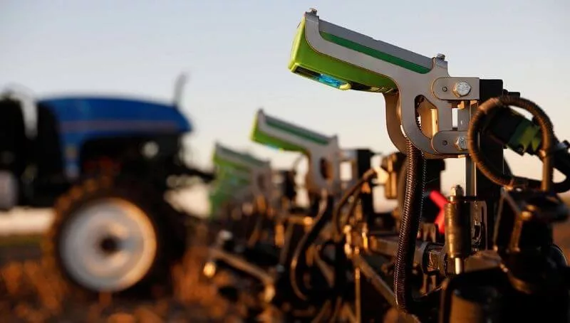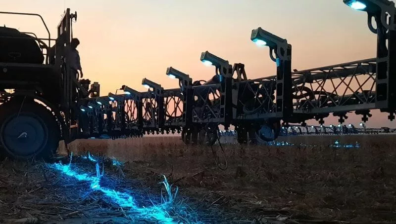 ¿Cómo funciona? Los sensores de clorofila van escaneando el suelo a medida que avanza; de esta forma, al detectar cada pequeña maleza dan una orden de aplicación para disparar el producto que la seca. Ese disparo se produce solo sobre el objetivo, minimizando así el uso de herbicidas hasta un 90%.