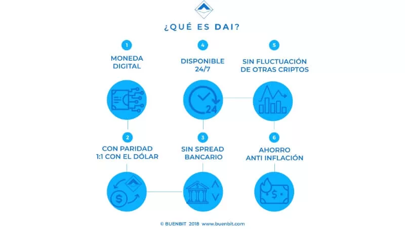 Dai al ser una stablecoin, se diferencia de otras monedas por lo que hablábamos antes, son de precio estable, la mayoría siguiendo el valor del dólar americano con garantías en Cripto.