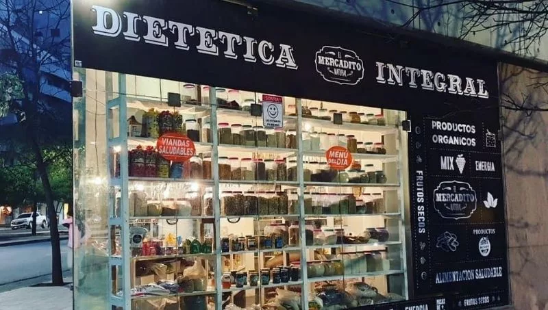 Siguiendo el ejemplo de un amigo propietario de una cadena saludable en Buenos Aires (con 183 sucursales y una distribuidora a gran escala) abrieron la primera dietética en un pequeño espacio sobre Boulevard San Juan. El éxito no tardó en llegar. Los tres locales de ropa que todavía tenían, cambiaron de rubro y se transformaron en dietéticas. Ahí nació (y registró) la marca El Mercadito Natural, y las sucursales se vistieron de blanco y negro.