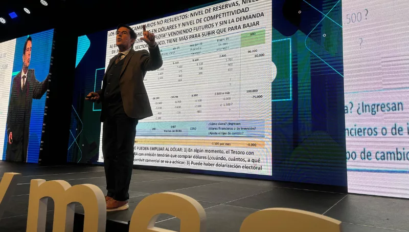 Carlos Melconian subió al escenario con un discurso cargado de números. Arrancó con una advertencia: “No hay logro económico. El partido dura 90 minutos”. Y a partir de ahí, construyó una intervención que alternó el pesimismo técnico con frases filosas que provocaron risas y asentimientos entre el público.